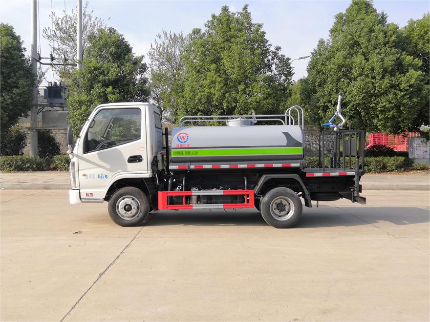 灑水車前裝有鴨形噴嘴或圓頭沖嘴,后面裝有圓柱開灑水噴嘴或蓮蓬頭噴嘴,后部有一工作平臺,裝配有水炮。后部還可裝8個噴嘴(選裝)。