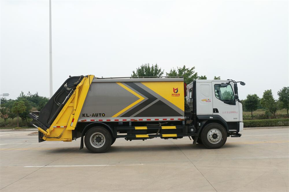 上裝配置:垃圾箱容積:12方,新款平面弧形廂體,廂體材料為武鋼優(yōu)質(zhì)碳鋼,PLC一鍵操作**,手電一體操作模式,兩側(cè)雙電控,帶駕駛室內(nèi)操作,底板支撐加強,雙向壓縮,開放式易清潔污水箱。壓縮式垃圾車采用機(jī)電液一體化技術(shù),借助機(jī)、電、液聯(lián)合自動**系統(tǒng)、電腦**、手動操作系統(tǒng),通過填裝器和推鏟等專用裝置,實現(xiàn)垃圾倒入、壓碎或壓扁、強力裝填,把垃圾擠入車廂并壓實和推卸,污水全部進(jìn)入污水廂,解決了垃圾運輸過程中的二次污染的問題。壓縮式垃圾車具有自動反復(fù)壓縮以及蠕動壓縮功能,壓縮比高、密封性好、裝載量大﹑操作方便、環(huán)保性好﹑整車?yán)霉β矢叩葍?yōu)點。作業(yè)自動化,垃圾收集方式簡便、高效。后翻轉(zhuǎn)機(jī)構(gòu)選裝:1、掛塑料桶式翻轉(zhuǎn)機(jī)構(gòu);2、掛鐵桶式翻轉(zhuǎn)機(jī)構(gòu);3、擺臂式翻轉(zhuǎn)機(jī)構(gòu); 4、簸箕斗式翻轉(zhuǎn)機(jī)構(gòu)。