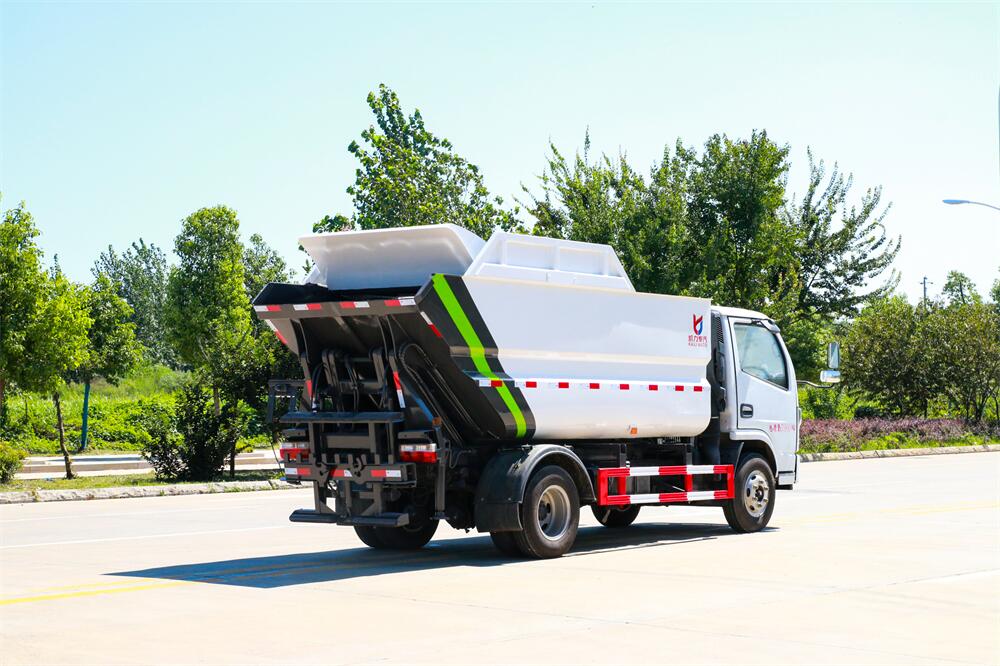 掛桶垃圾車是由密封式垃圾廂、液壓系統、操作系統組成,實現一車與多個垃圾桶聯合作業,廂體上的液壓提升機裝置可將垃圾桶吊上、放下,上下升降。掛桶垃圾車的特點是一個車能配幾十個垃圾桶,能實現一臺車與多個垃圾桶聯合作業,循環運輸,充分提高了車輛的運輸能力,特別適用于短途運輸,如環衛部門對城鎮垃圾的清理、運輸等。同時,掛桶垃圾車還可以加裝其它功能,形成其它多功能掛桶垃圾車,如:掛桶壓縮式垃圾車、掛桶式泔水垃圾車、掛桶式對接垃圾車等。