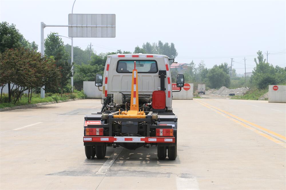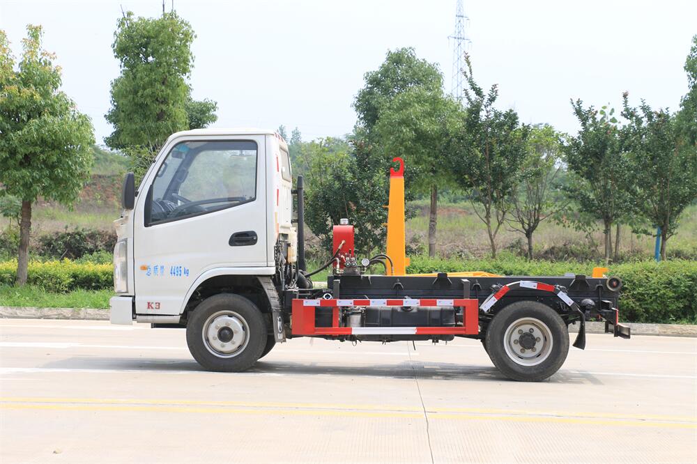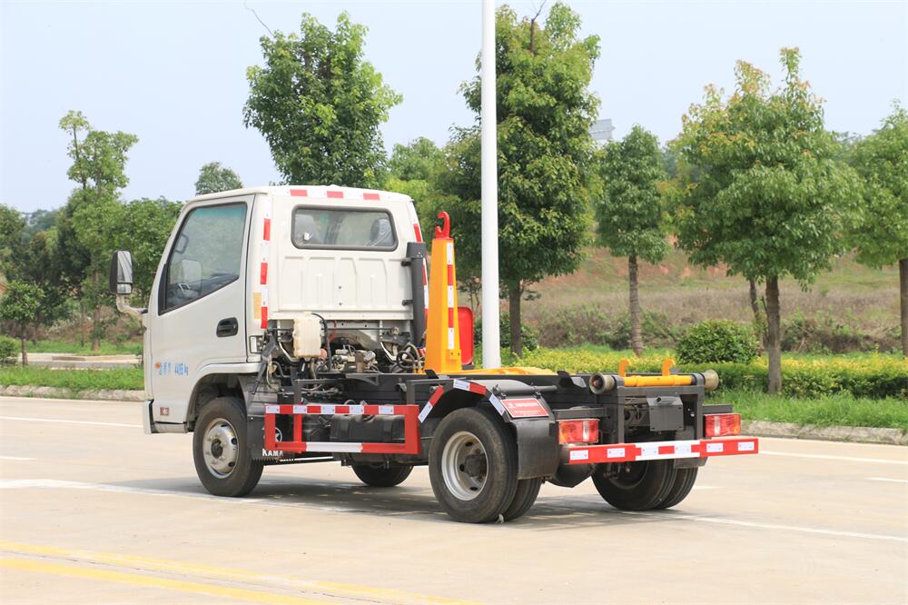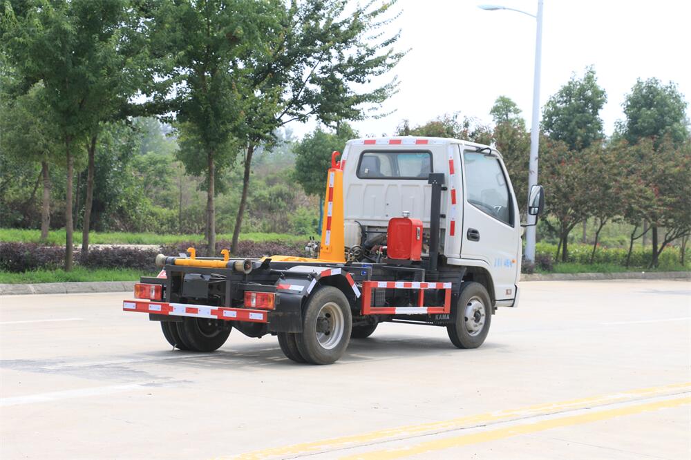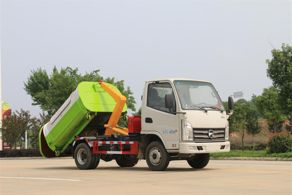 勾臂式垃圾車(車廂可卸式垃圾車)介紹: 車廂可卸式垃圾車又叫拉臂式垃圾車,是一種采用高新設(shè)計(jì)可伸縮的鉤臂,實(shí)現(xiàn)垃圾廂的二次吊裝,自吊上放下,可自行傾倒垃圾的環(huán)衛(wèi)設(shè)備。 拉臂式垃圾車結(jié)構(gòu)簡單,操作穩(wěn)定方便,裝卸效率高,機(jī)械化程度高,節(jié)省人力。鉤臂垃圾車一車可帶多個垃圾廂,在裝卸的運(yùn)輸過程中可有效地避免二次污染。 拉臂垃圾車采用高新設(shè)計(jì)可擺動的鉤臂,垃圾箱由框架、開啟油缸、滑輪、后門和若干加強(qiáng)框架與鋼板焊接而成。調(diào)換貨廂快捷方便,貨廂上帶蓋(倒垃圾時可翻開),鉤臂垃圾車?yán)鴰w可選用碳鋼、不銹鋼材質(zhì)、內(nèi)部采取環(huán)氧樹脂防腐處理,改裝部分與原車底盤為可分離式,維修方便且保持了原車的機(jī)動性及行駛性能。