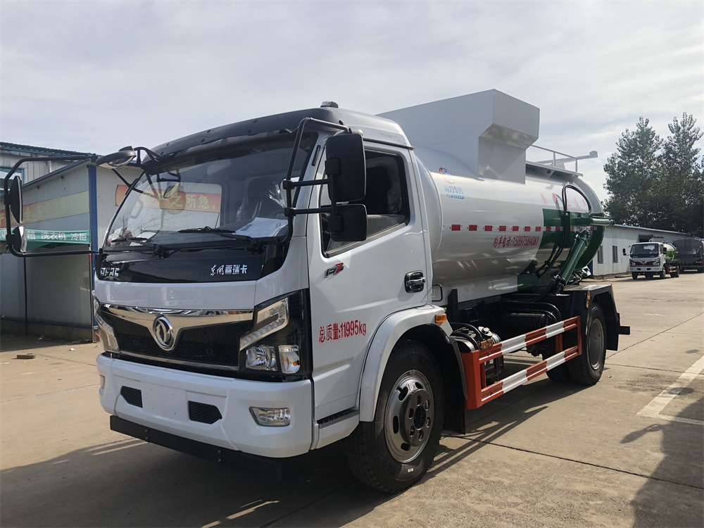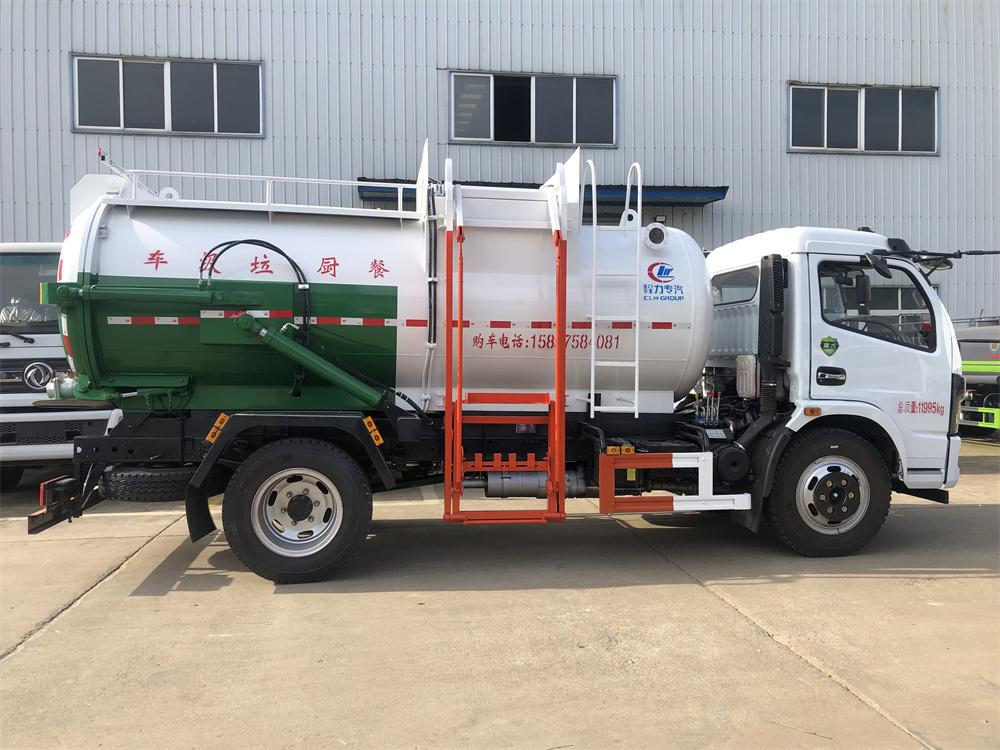 上裝配置:罐體容積8m3,配備120L/240L掛桶提升翻轉機構,液壓系統,后蓋液壓鎖緊開啟,罐體可以舉升自卸,尾部帶自流閥;用于運輸液態垃圾,其特點操作簡單,密封性好,無泄漏,無異味;可選裝固液分離功能,推板擠壓功能,常用于餐館的垃圾轉運處理。