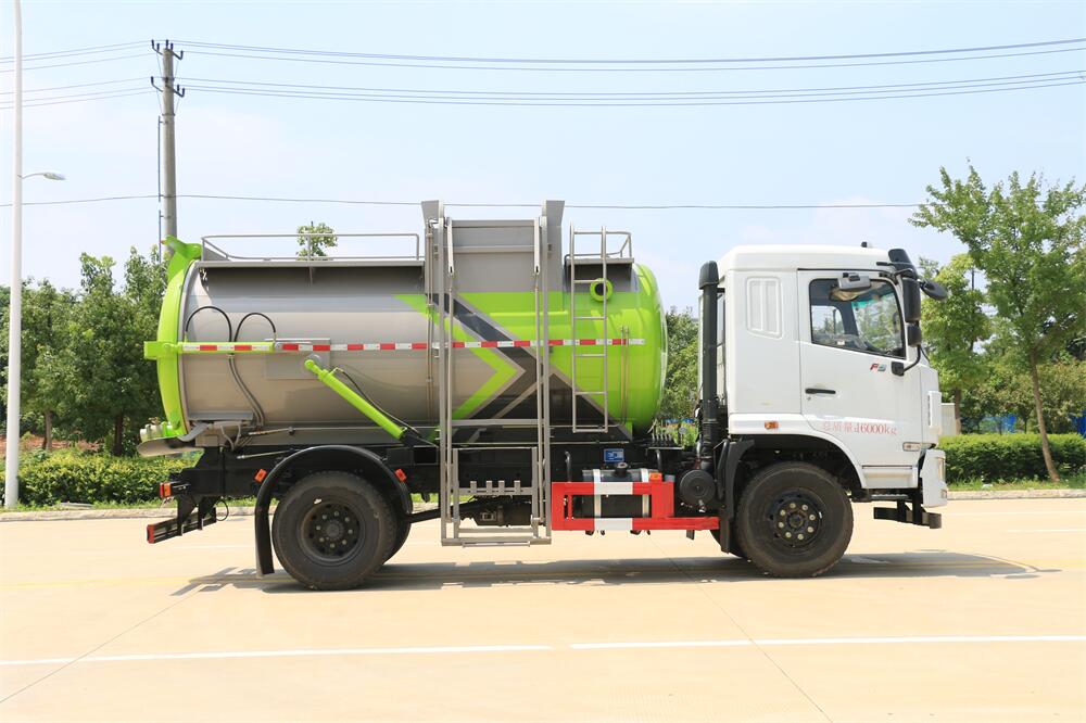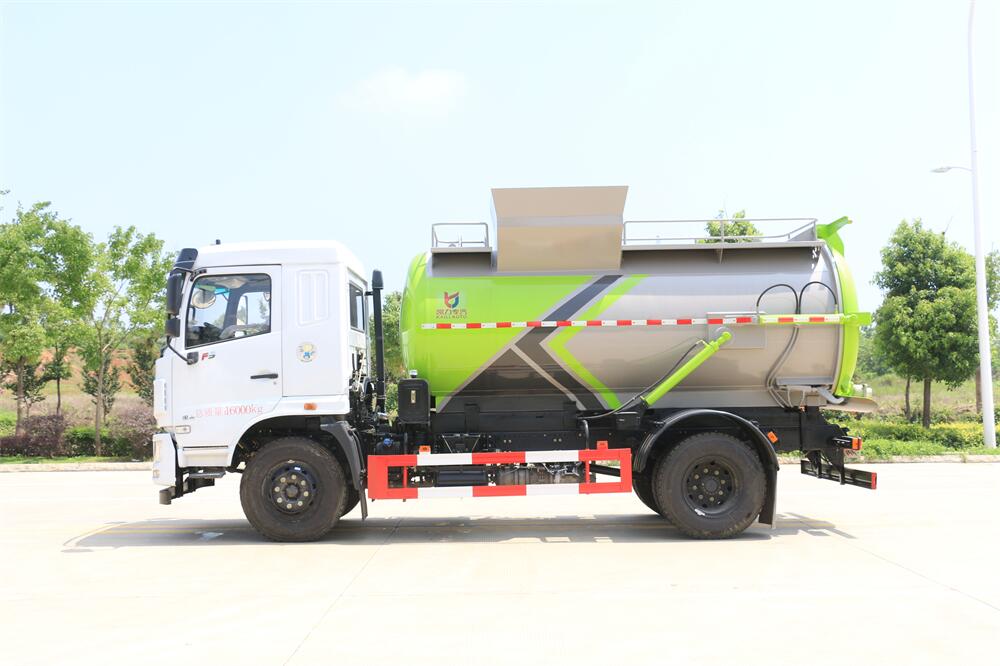 上裝配置:罐體容積10m3,配備120L/240L掛桶提升翻轉(zhuǎn)機(jī)構(gòu),液壓系統(tǒng),后蓋液壓鎖緊開(kāi)啟,罐體可以舉升自卸,尾部帶自流閥;用于運(yùn)輸液態(tài)垃圾,其特點(diǎn)操作簡(jiǎn)單,密封性好,無(wú)泄漏,無(wú)異味;可選裝固液分離功能,推板擠壓功能,常用于餐館的垃圾轉(zhuǎn)運(yùn)處理。