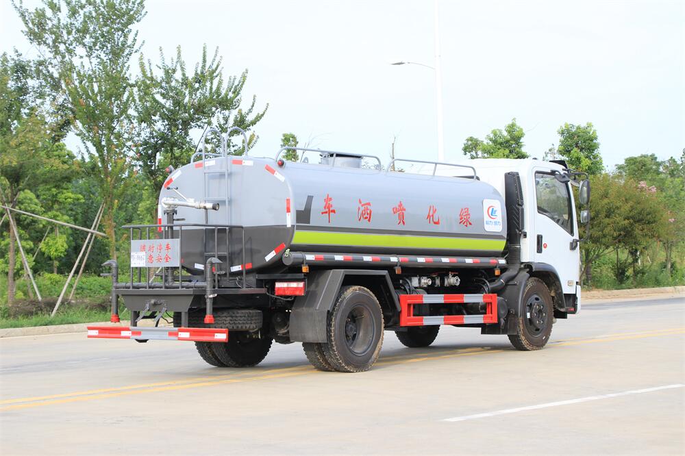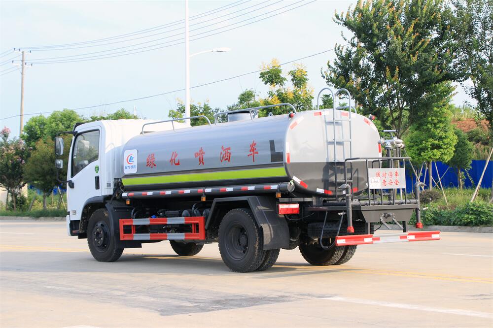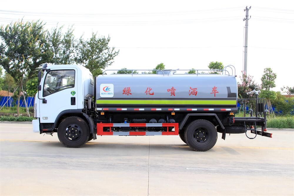 灑水車(chē)性能特點(diǎn):前沖(噴)后灑,帶側(cè)噴,罐體后帶工作平臺(tái),平臺(tái)上安裝綠化灑水炮,灑水炮可360旋轉(zhuǎn),可連續(xù)調(diào)成直沖狀、大雨、小雨、毛毛雨,帶安全護(hù)欄,配備全國(guó)質(zhì)量評(píng)比**名的杭州威龍大功率專(zhuān)用  灑水泵,泵可自吸自排,安裝過(guò)濾網(wǎng),帶消防接口,可通過(guò)消防栓進(jìn)水,帶自流閥,隨車(chē)選裝20米綠化卷盤(pán),可噴灑農(nóng)藥。