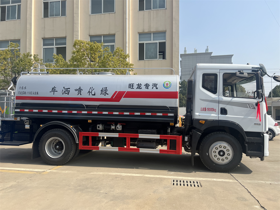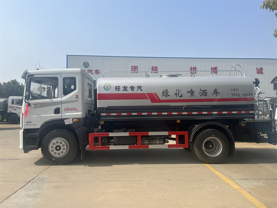 灑水車性能特點:前沖(噴)后灑,帶側噴,罐體后帶工作平臺,平臺上安裝綠化灑水炮,灑水炮可360旋轉,可連續(xù)調成直沖狀、大雨、小雨、毛毛雨,帶安全護欄,配備全國質量評比**名的杭州威龍大功率專用  灑水泵,泵可自吸自排,安裝過濾網,帶消防接口,可通過消防栓進水,帶自流閥,隨車選裝20米綠化卷盤,可噴灑農藥。