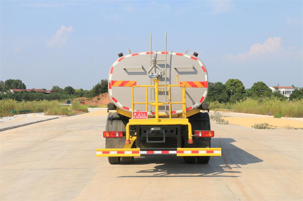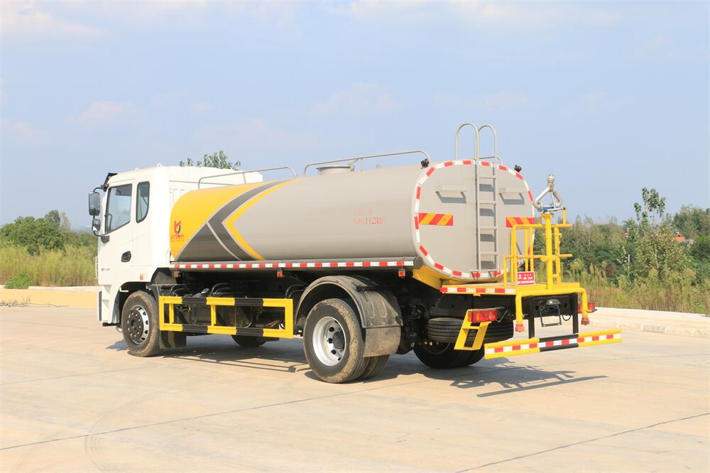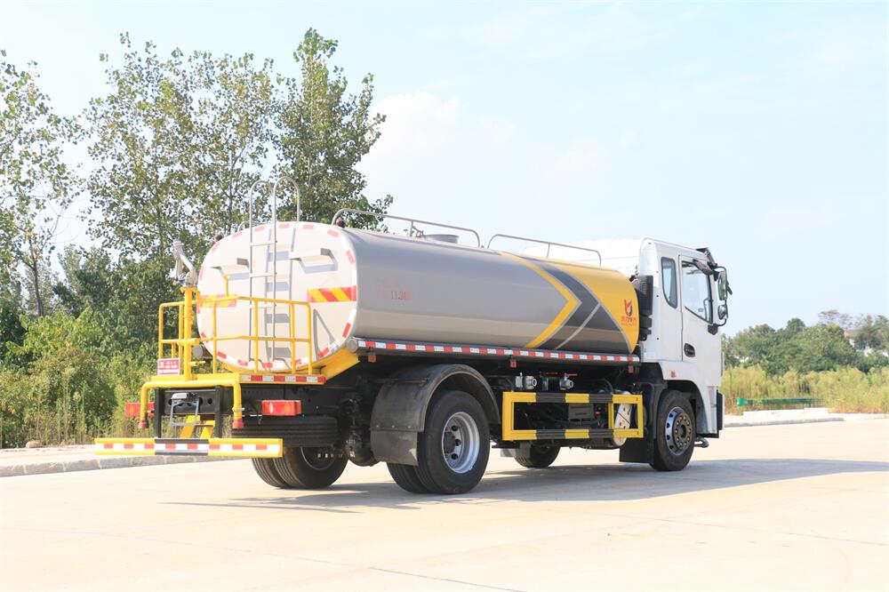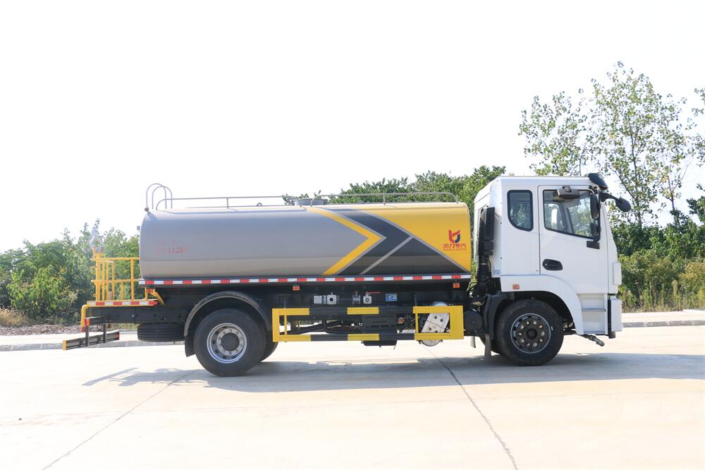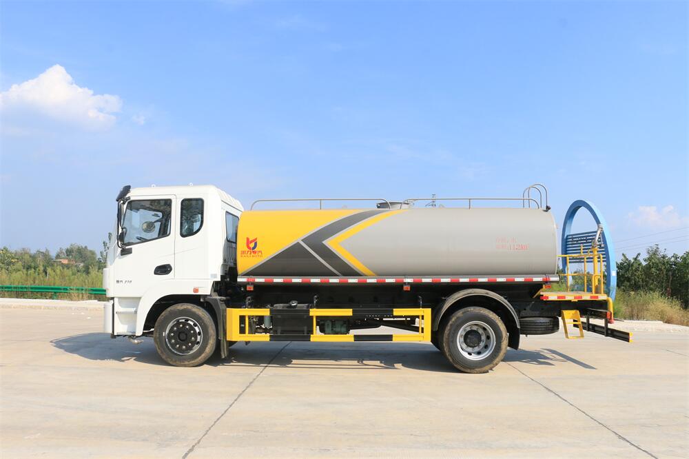灑水車前裝有鴨形噴嘴或圓頭沖嘴,后面裝有圓柱開灑水噴嘴或蓮蓬頭噴嘴,后部有一工作平臺,裝配有水炮。后部還可裝8個噴嘴(選裝)。