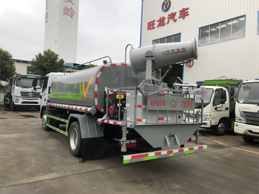 上裝配置:罐體容積 9立方,風送式霧炮機組30米,40米選擇,罐體采用國標Q235碳鋼材質,罐體厚度4MM,前后封頭5MM加厚型,罐體內雙層隔板具有防波蕩作用,以減輕汽車行駛時罐內液體沖擊;灑水車整車及外形尺寸嚴格按照**機動車公告制作而成;裝配大功率專用灑水泵,前沖、后灑、側噴、后平臺帶綠化灑水炮,灑水炮可全方位旋轉,可連續調成直沖狀、大雨、小雨、毛毛雨;配消防接口,自流閥,濾網,帶自吸自排功能。前封頭帶水位計,后平臺主管路帶1寸澆花接口,后爬梯,帶1個消防接頭,帶1個自流閥,1個過濾裝置,其余標配。
