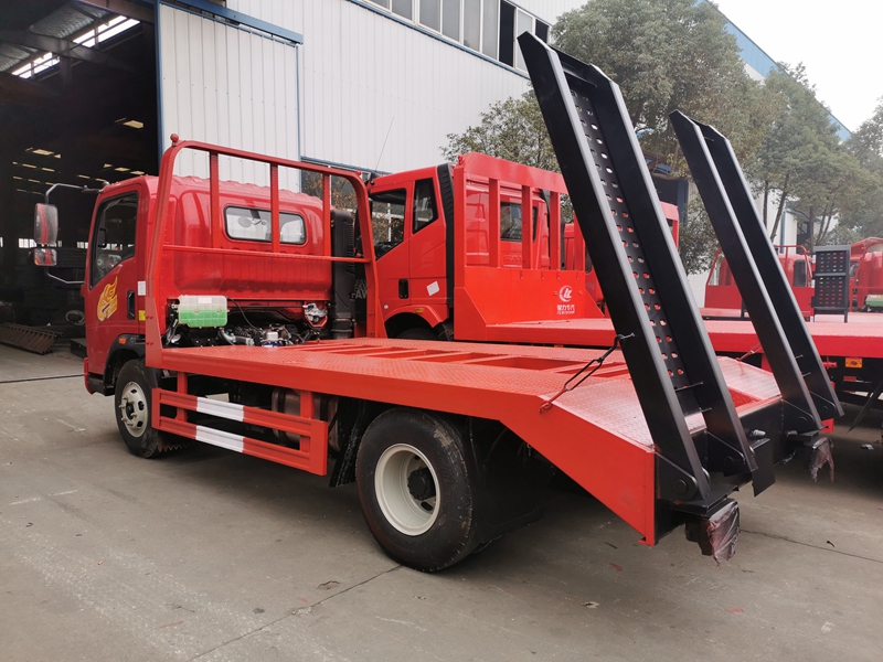 上裝采用五毫米花紋鋼板,100*100方鋼做橫梁,簡易爬梯,可拉12噸以下挖機。可拉12噸以下挖機!